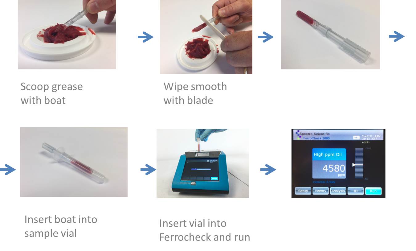 FerroCheck 2000系列便攜式鐵量儀 可精確檢測潤滑油和潤滑脂中鐵磁性顆粒濃度。檢測時間快,大約30秒。所需樣品少,潤滑油僅需1.5 ml油樣,潤滑脂僅需0.75 ml油樣。FerroCheck測量的鐵磁顆粒既包括來自正常設(shè)備磨損的小顆粒,也包括來自異常磨損的大顆粒。